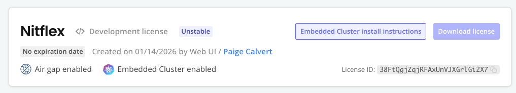 On the page for the customer you just created, click Embedded Cluster install instructions.